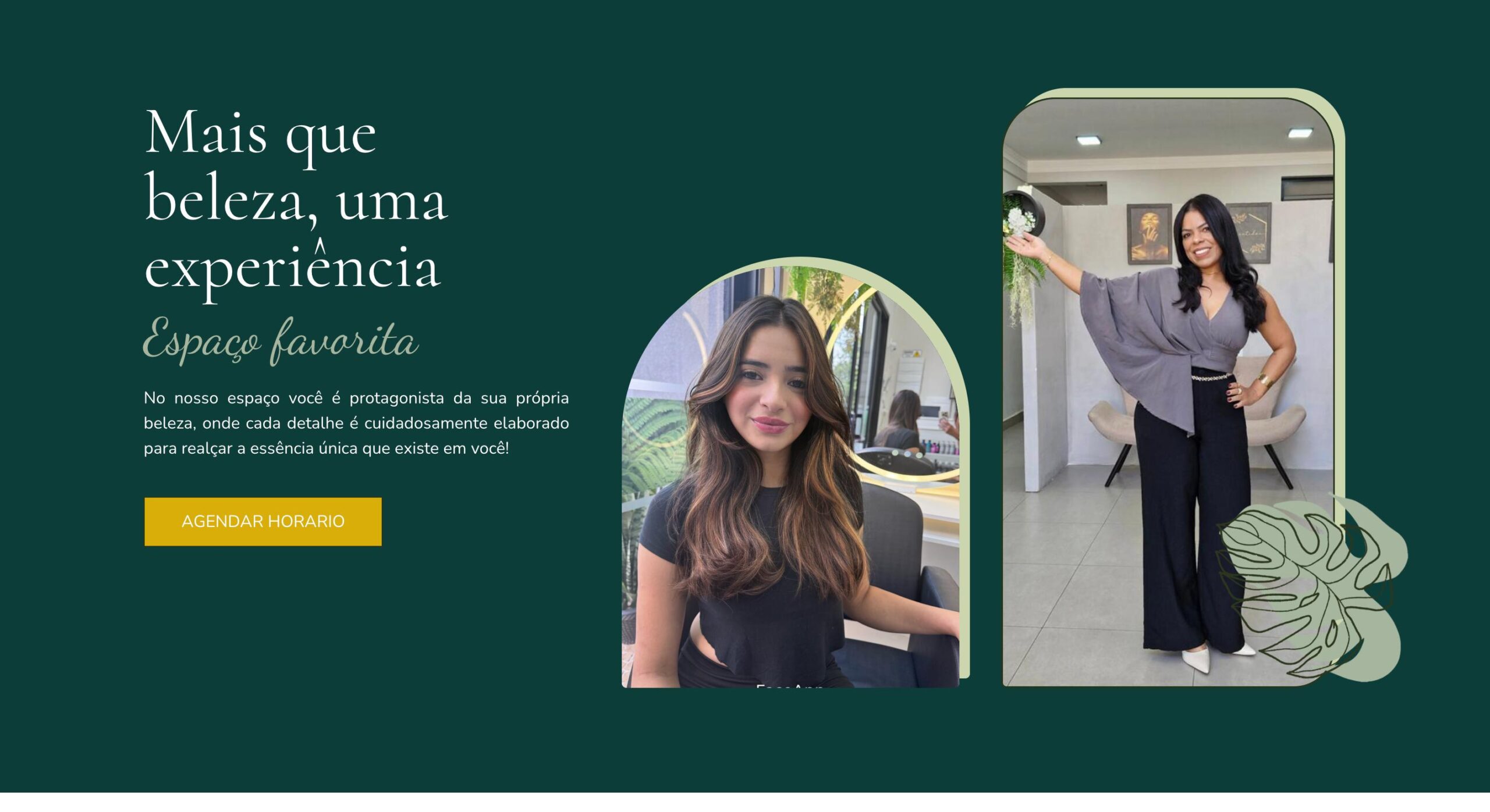 Espaço Favorita, site elegante para salão de beleza com agendamento online, galeria de serviços e identidade visual sofisticada.