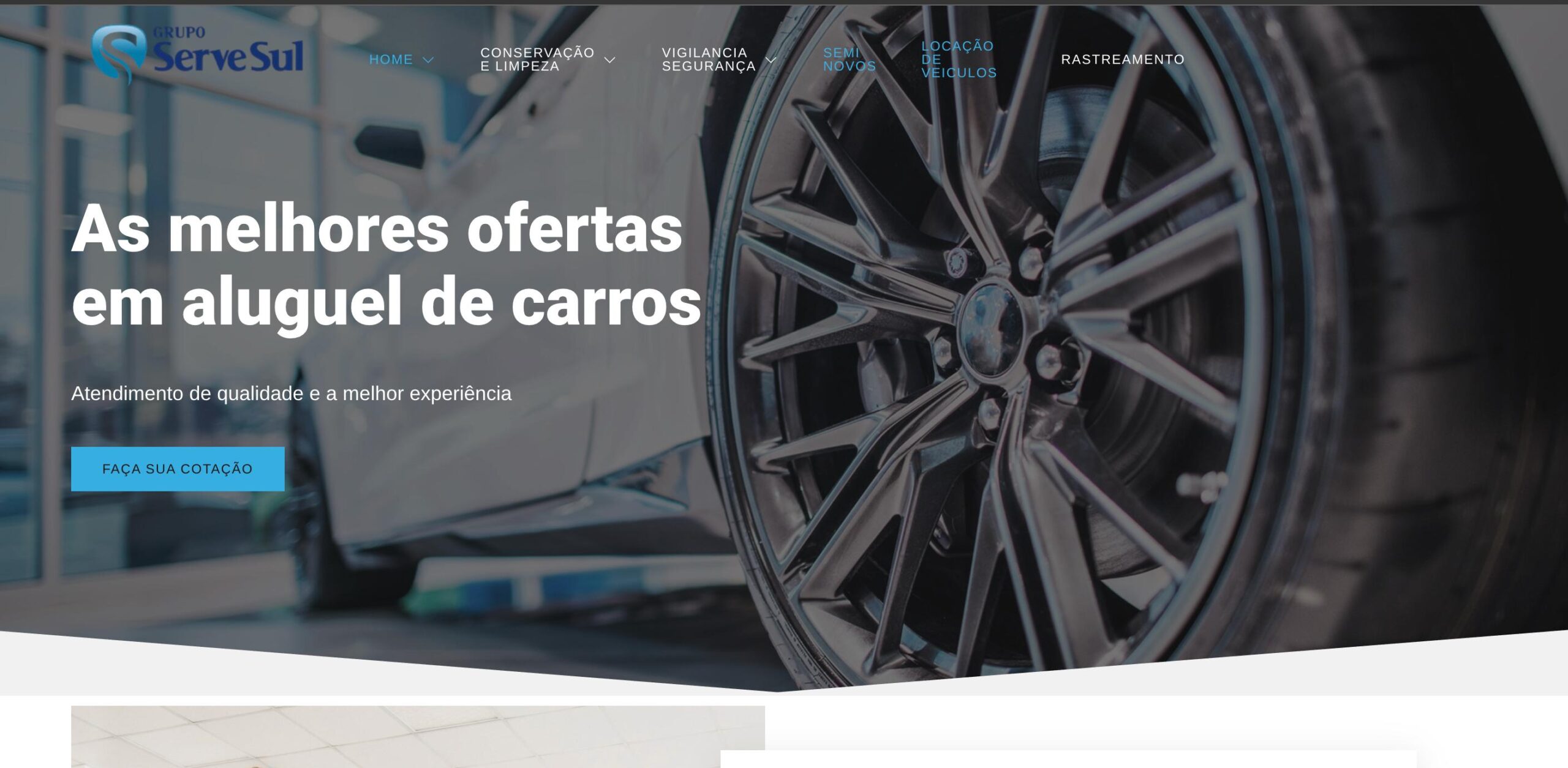 Grupo Serve Sul, plataforma multiservíços para locação de veículos, conservação, limpeza e vigilância. Design moderno com foco em conversão